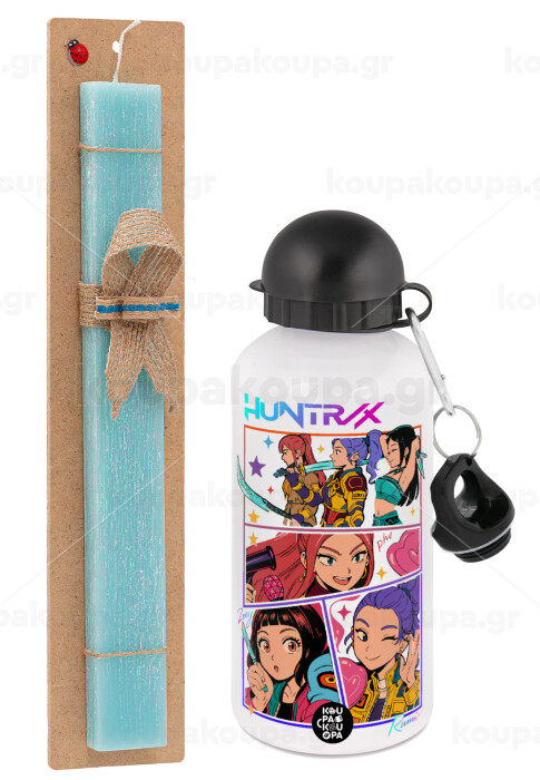 Huntrix Kpop Girls, Easter Set, metallic aluminum water bottle (500ml) & scented flat candle (30cm) (TURQUOISE)