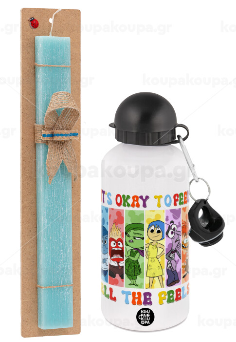 Inside Out It's Okay To Feel All The Feels , Easter Set, metallic aluminum water bottle (500ml) & scented flat candle (30cm) (TURQUOISE)