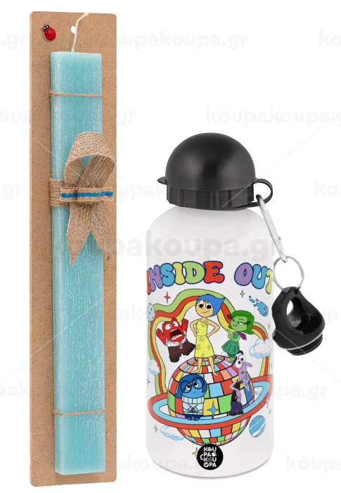 Inside Out, Easter Set, metallic aluminum water bottle (500ml) & scented flat candle (30cm) (TURQUOISE)