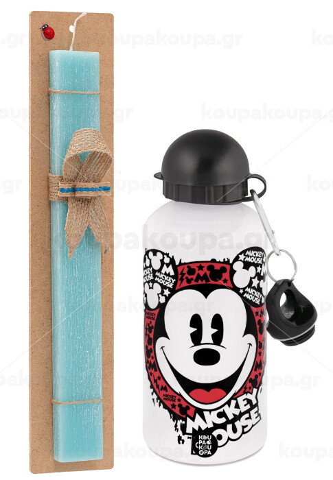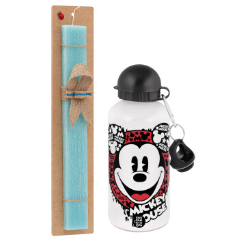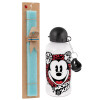 Mickey Mouse, Easter Set, metallic aluminum water bottle (500ml) & scented flat candle (30cm) (TURQUOISE)