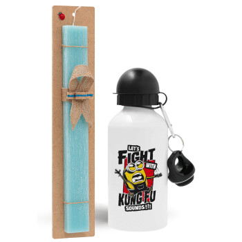Minions Let's fight with kung fu sounds, Easter Set, metallic aluminum water bottle (500ml) & scented flat candle (30cm) (TURQUOISE)