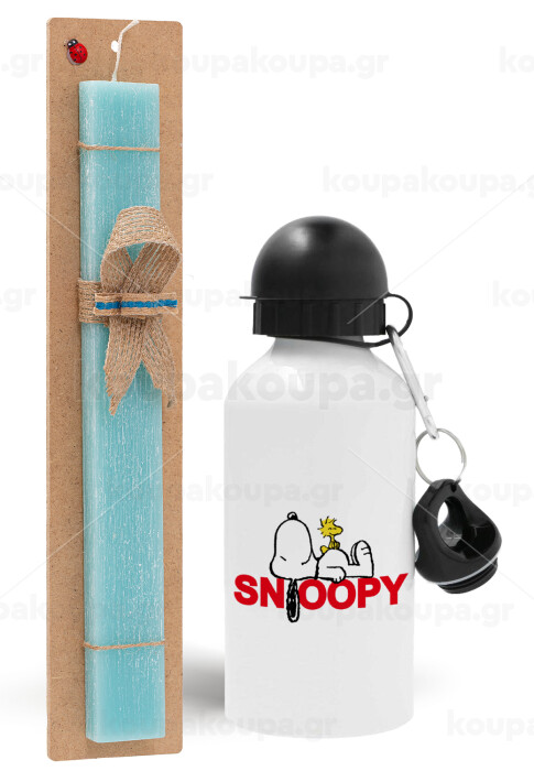 Snoopy sleep, Easter Set, metallic aluminum water bottle (500ml) & scented flat candle (30cm) (TURQUOISE)