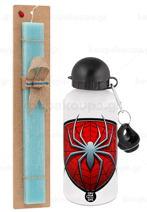 Spider-man, Easter Set, metallic aluminum water bottle (500ml) & scented flat candle (30cm) (TURQUOISE)