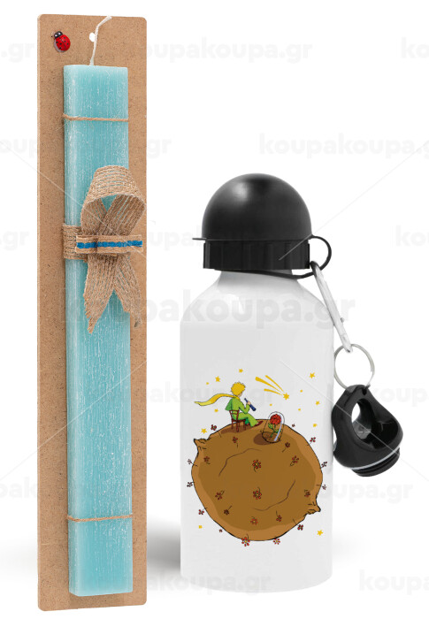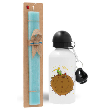 The Little prince planet, Easter Set, metallic aluminum water bottle (500ml) & scented flat candle (30cm) (TURQUOISE)