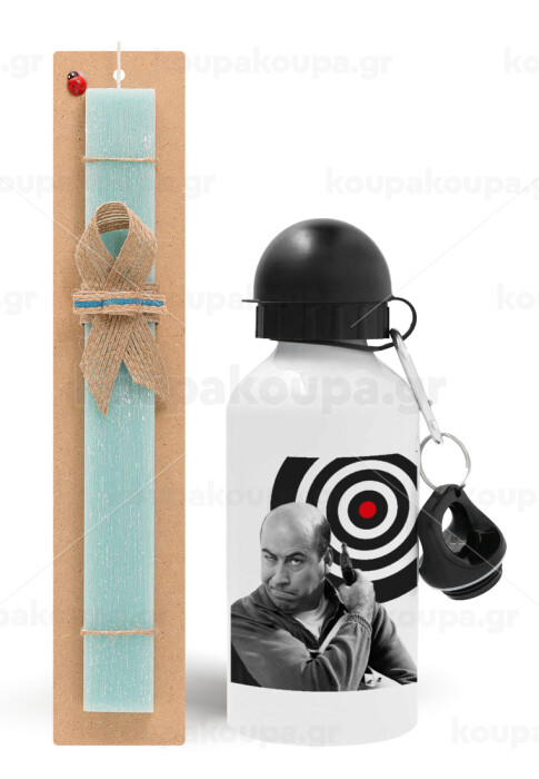 Θου Βου Φαλακρός Πράκτωρ, Easter Set, metallic aluminum water bottle (500ml) & scented flat candle (30cm) (TURQUOISE)