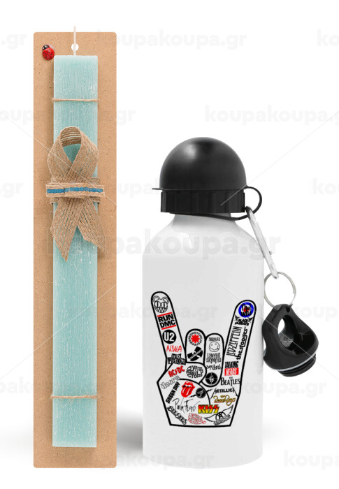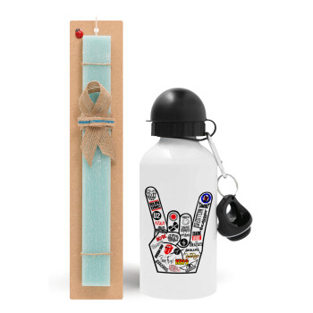 Best Rock Bands hand, Easter Set, metallic aluminum water bottle (500ml) & scented flat candle (30cm) (TURQUOISE)