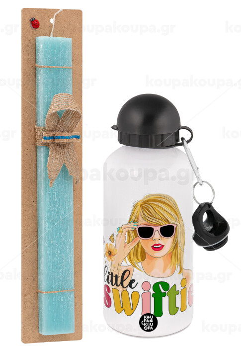 Little Swiftie, Easter Set, metallic aluminum water bottle (500ml) & scented flat candle (30cm) (TURQUOISE)