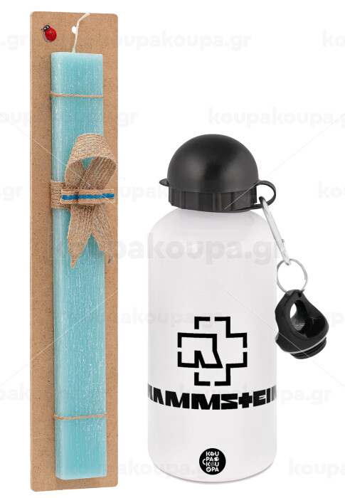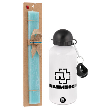 Rammstein, Easter Set, metallic aluminum water bottle (500ml) & scented flat candle (30cm) (TURQUOISE)
