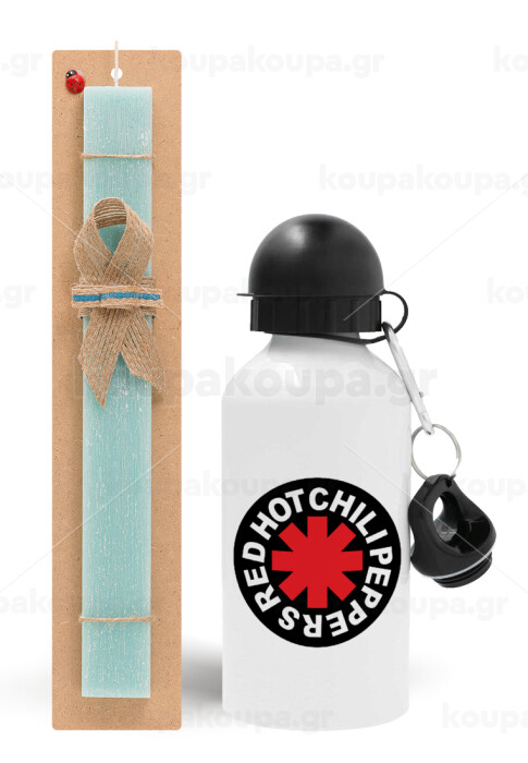 Red Hot Chili Peppers, Easter Set, metallic aluminum water bottle (500ml) & scented flat candle (30cm) (TURQUOISE)