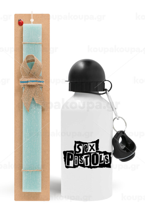 Sex Pistols, Easter Set, metallic aluminum water bottle (500ml) & scented flat candle (30cm) (TURQUOISE)