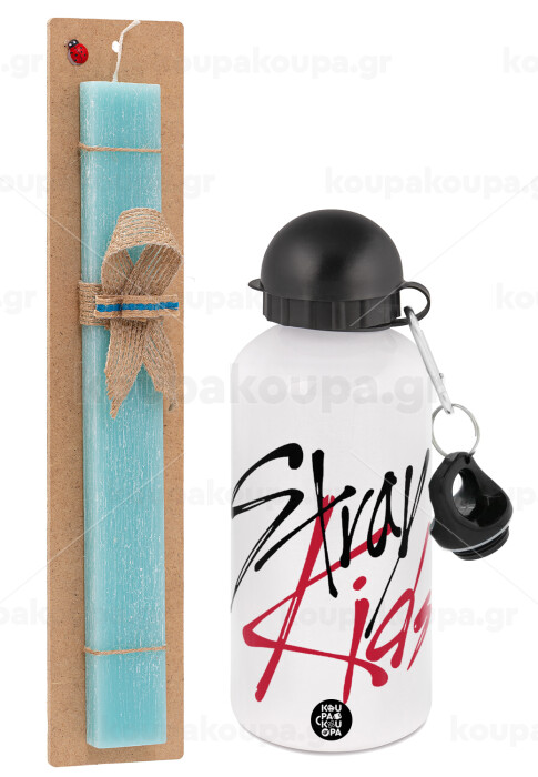 Stray Kids, Easter Set, metallic aluminum water bottle (500ml) & scented flat candle (30cm) (TURQUOISE)