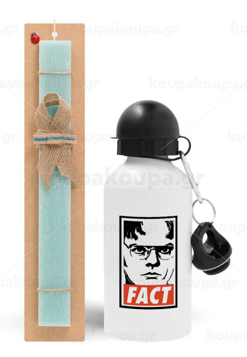 Dunder Mifflin FACT, Easter Set, metallic aluminum water bottle (500ml) & scented flat candle (30cm) (TURQUOISE)