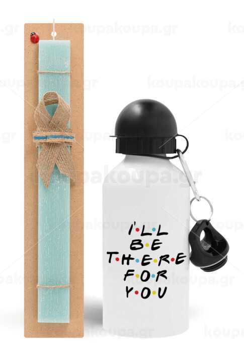 Friends i i'll be there for you, Easter Set, metallic aluminum water bottle (500ml) & scented flat candle (30cm) (TURQUOISE)