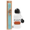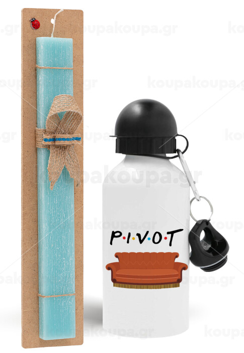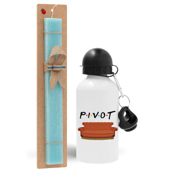 Friends Pivot, Easter Set, metallic aluminum water bottle (500ml) & scented flat candle (30cm) (TURQUOISE)