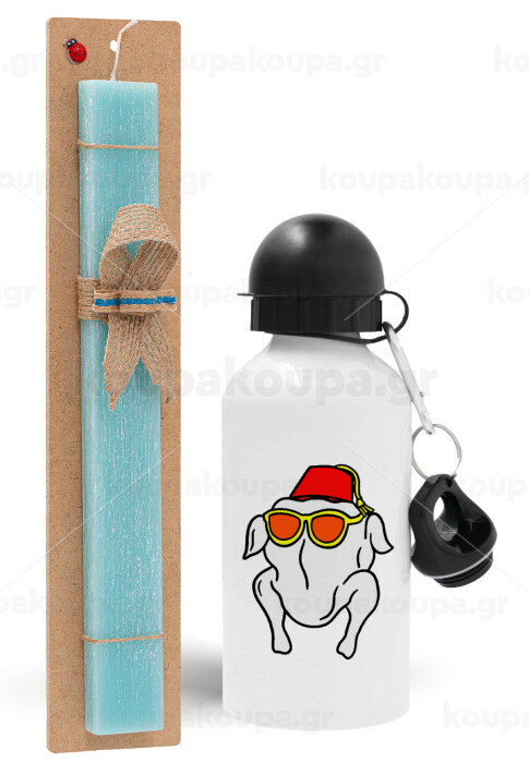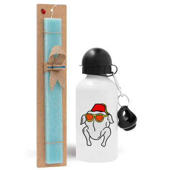 Friends turkey, Easter Set, metallic aluminum water bottle (500ml) & scented flat candle (30cm) (TURQUOISE)