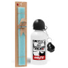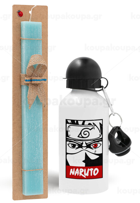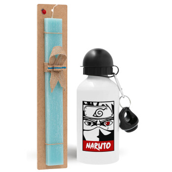 Naruto anime, Easter Set, metallic aluminum water bottle (500ml) & scented flat candle (30cm) (TURQUOISE)