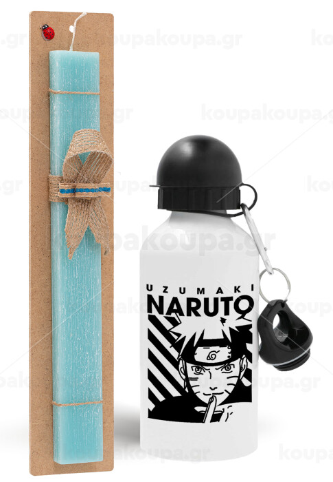 Naruto uzumaki, Easter Set, metallic aluminum water bottle (500ml) & scented flat candle (30cm) (TURQUOISE)