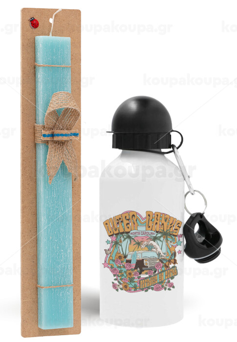 Outerbanks paradise on earth, Easter Set, metallic aluminum water bottle (500ml) & scented flat candle (30cm) (TURQUOISE)