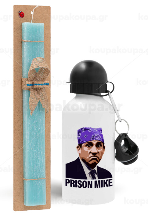 Prison Mike The office, Easter Set, metallic aluminum water bottle (500ml) & scented flat candle (30cm) (TURQUOISE)