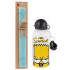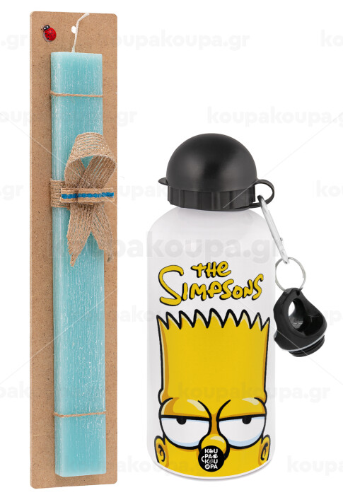 The Simpsons Bart, Easter Set, metallic aluminum water bottle (500ml) & scented flat candle (30cm) (TURQUOISE)