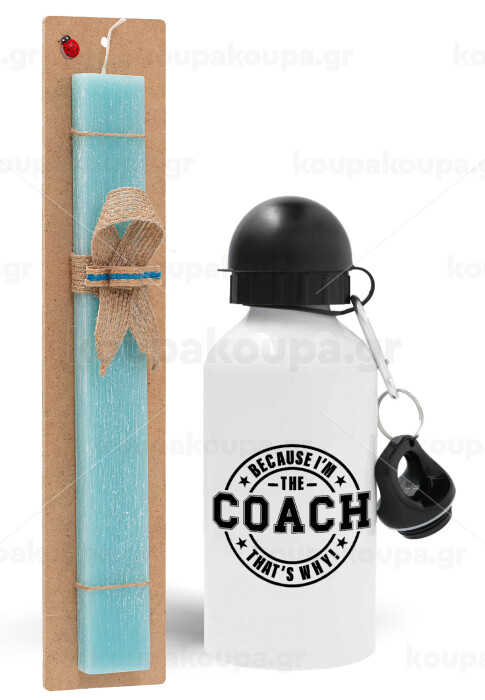 Because i'm the Coach, Easter Set, metallic aluminum water bottle (500ml) & scented flat candle (30cm) (TURQUOISE)