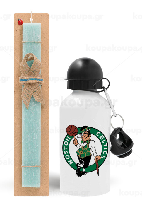 Boston Celtics, Easter Set, metallic aluminum water bottle (500ml) & scented flat candle (30cm) (TURQUOISE)