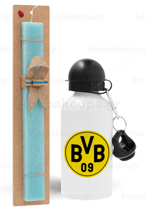 BVB Dortmund, Easter Set, metallic aluminum water bottle (500ml) & scented flat candle (30cm) (TURQUOISE)