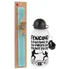 Fencing, do everything that your parents told you not to do., Easter Set, metallic aluminum water bottle (500ml) & scented flat candle (30cm) (TURQUOISE)