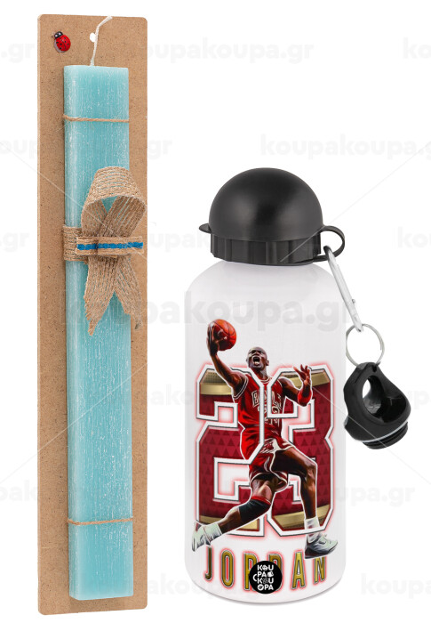 Jordan 23, Easter Set, metallic aluminum water bottle (500ml) & scented flat candle (30cm) (TURQUOISE)