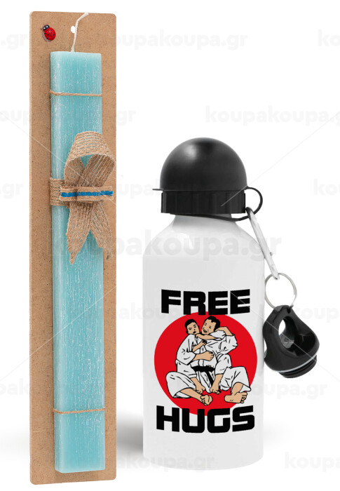 JUDO free hugs, Easter Set, metallic aluminum water bottle (500ml) & scented flat candle (30cm) (TURQUOISE)
