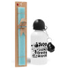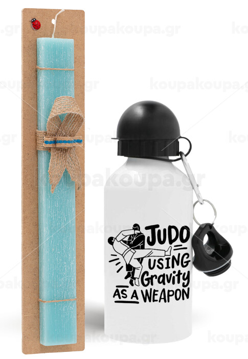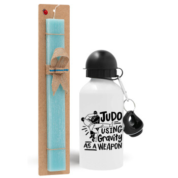 Judo using gravity as a weapon, Easter Set, metallic aluminum water bottle (500ml) & scented flat candle (30cm) (TURQUOISE)