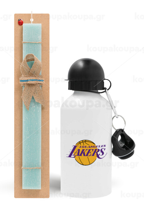 Lakers, Easter Set, metallic aluminum water bottle (500ml) & scented flat candle (30cm) (TURQUOISE)