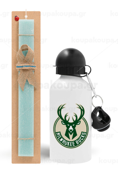 Milwaukee bucks, Easter Set, metallic aluminum water bottle (500ml) & scented flat candle (30cm) (TURQUOISE)