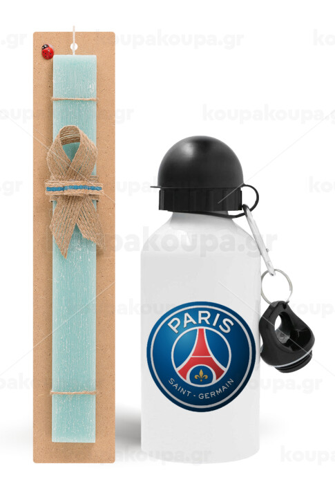 Paris Saint-Germain F.C., Easter Set, metallic aluminum water bottle (500ml) & scented flat candle (30cm) (TURQUOISE)