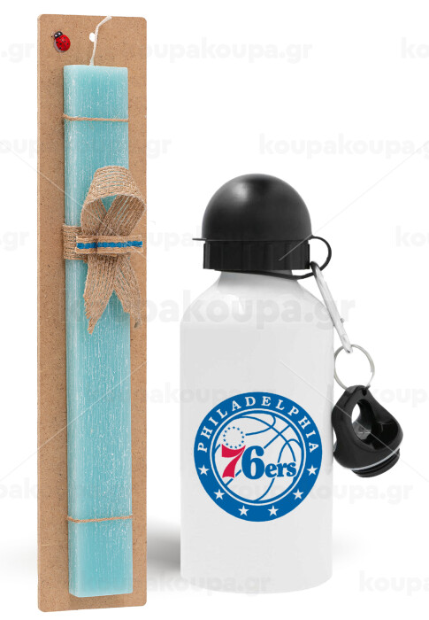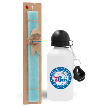 Philadelphia 76ers, Easter Set, metallic aluminum water bottle (500ml) & scented flat candle (30cm) (TURQUOISE)