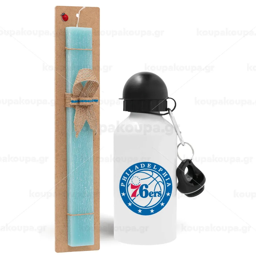 Philadelphia 76ers, Easter Set, metallic aluminum water bottle (500ml) & scented flat candle (30cm) (TURQUOISE)