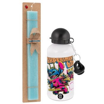 Stitch Experiment 626, Easter Set, metallic aluminum water bottle (500ml) & scented flat candle (30cm) (TURQUOISE)