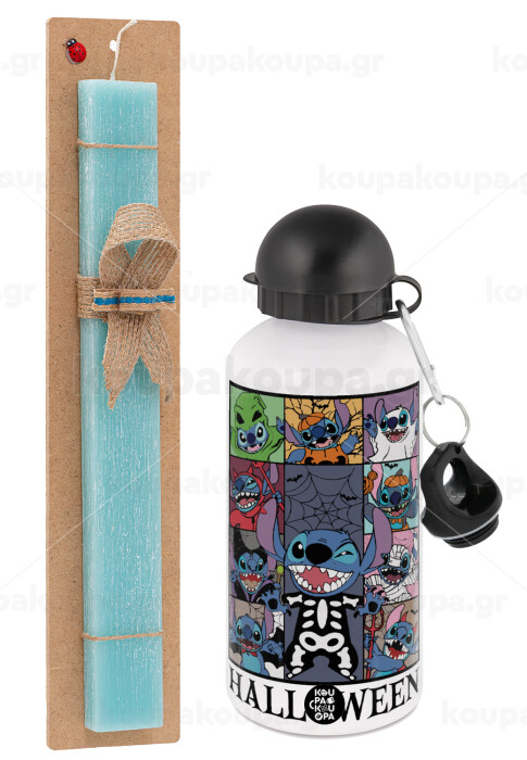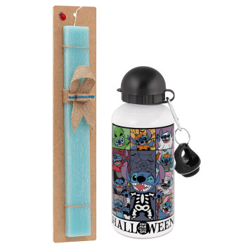 Stitch Halloween, Easter Set, metallic aluminum water bottle (500ml) & scented flat candle (30cm) (TURQUOISE)