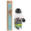 Stitch Halloween scooby car, Easter Set, metallic aluminum water bottle (500ml) & scented flat candle (30cm) (TURQUOISE)