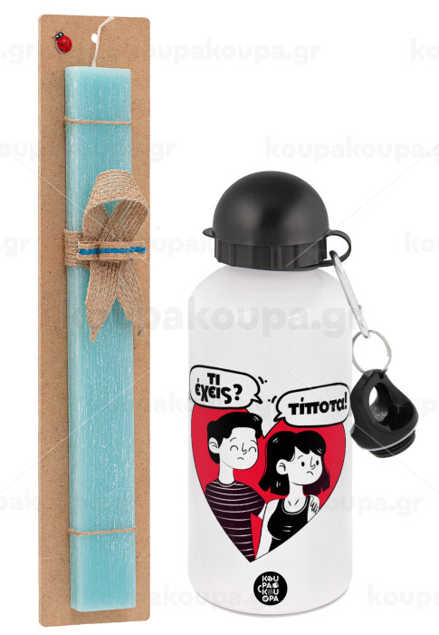 Τι έχεις? Τίποτα!, Easter Set, metallic aluminum water bottle (500ml) & scented flat candle (30cm) (TURQUOISE)