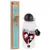 Τι έχεις? Τίποτα!, Easter Set, metallic aluminum water bottle (500ml) & scented flat candle (30cm) (TURQUOISE)