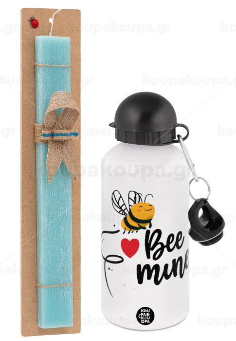 Bee mine!!!, Easter Set, metallic aluminum water bottle (500ml) & scented flat candle (30cm) (TURQUOISE)