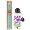 EAT pussy it's vegan, Easter Set, metallic aluminum water bottle (500ml) & scented flat candle (30cm) (TURQUOISE)