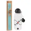 I Love you thisssss much (infinity), Easter Set, metallic aluminum water bottle (500ml) & scented flat candle (30cm) (TURQUOISE)