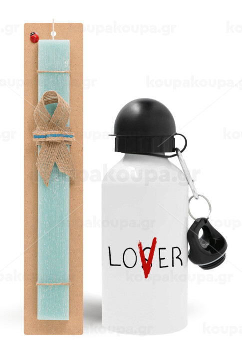 IT Lov(s)er, Easter Set, metallic aluminum water bottle (500ml) & scented flat candle (30cm) (TURQUOISE)