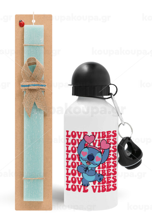 Lilo & Stitch Love vibes, Easter Set, metallic aluminum water bottle (500ml) & scented flat candle (30cm) (TURQUOISE)
