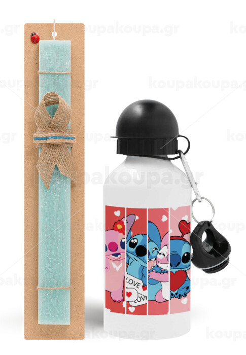 Lilo & Stitch Love, Easter Set, metallic aluminum water bottle (500ml) & scented flat candle (30cm) (TURQUOISE)