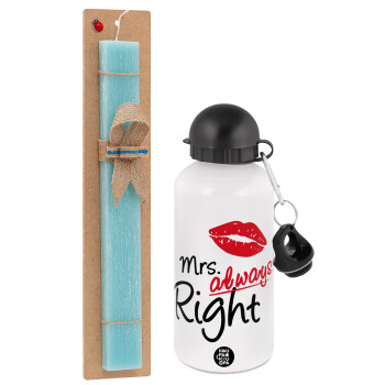 Mrs always right kiss, Easter Set, metallic aluminum water bottle (500ml) & scented flat candle (30cm) (TURQUOISE)