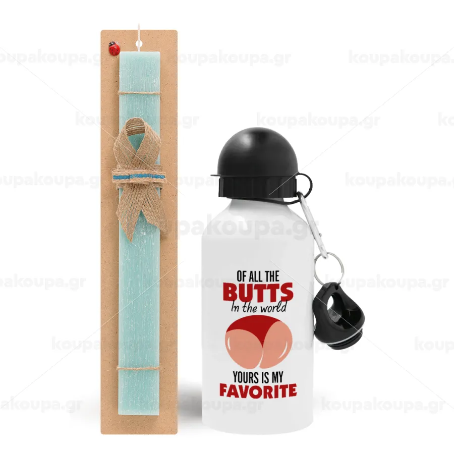 Of all the Butts in the world, your's is my favorite, Easter Set, metallic aluminum water bottle (500ml) & scented flat candle (30cm) (TURQUOISE)