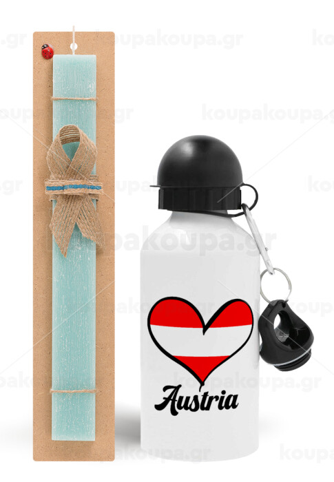 Austria flag, Easter Set, metallic aluminum water bottle (500ml) & scented flat candle (30cm) (TURQUOISE)